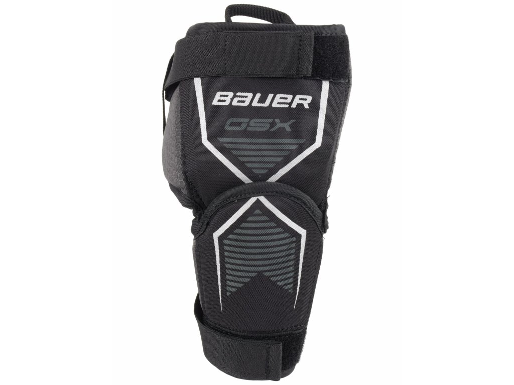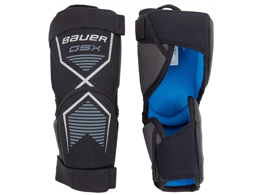 Brankářské chrániče kolen Bauer GSX s velmi dobrou úrovní ochrany díky použití lehké ochranné pěny s vysokou hustotou. Chrániče umožňují velmi dobrou pohyblivost díky dvojdílné konstrukci, která neomezuje brankáře v pohybu, díky zapínání se dvěma elastickými pásky bezpečně a jistě přiléhají k noze. Vnitřní podšívka Bauer Thermo Max+ rychle odvádí pot a vlhkost od těla a zároveň bojuje proti bakteriím způsobujícím zápach.