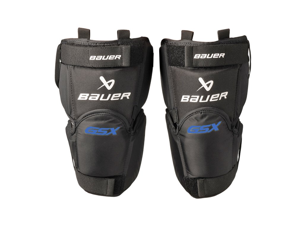 Brankářské chrániče kolen Bauer GSX s velmi dobrou úrovní ochrany díky použití lehké ochranné pěny s vysokou hustotou. Chrániče umožňují velmi dobrou pohyblivost díky dvojdílné konstrukci, která neomezuje brankáře v pohybu, díky zapínání se dvěma elastickými pásky bezpečně a jistě přiléhají k noze. Vnitřní podšívka Bauer Thermo Max+ rychle odvádí pot a vlhkost od těla a zároveň bojuje proti bakteriím způsobujícím zápach.