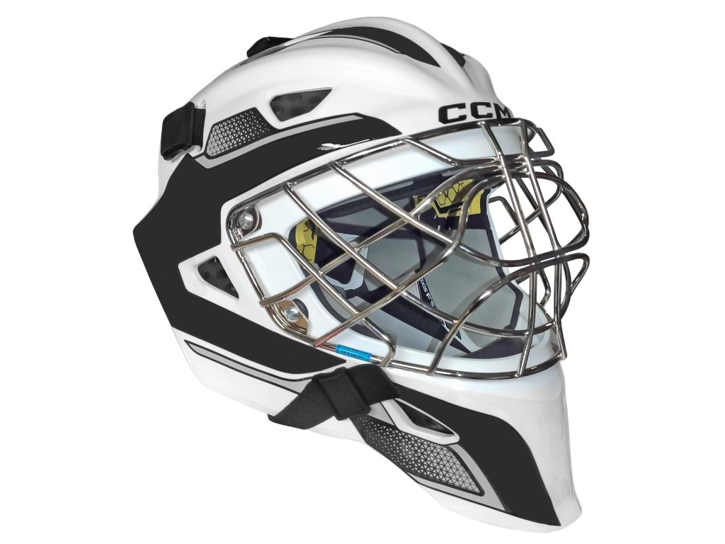 - Vnější materiál masky je ze špičkového a velmi lehkého polykarbonátu a spolu s mírně prodlouženým tvarem skořepiny směrem dozadu zajišťuje vynikající úroveň ochrany brankáře