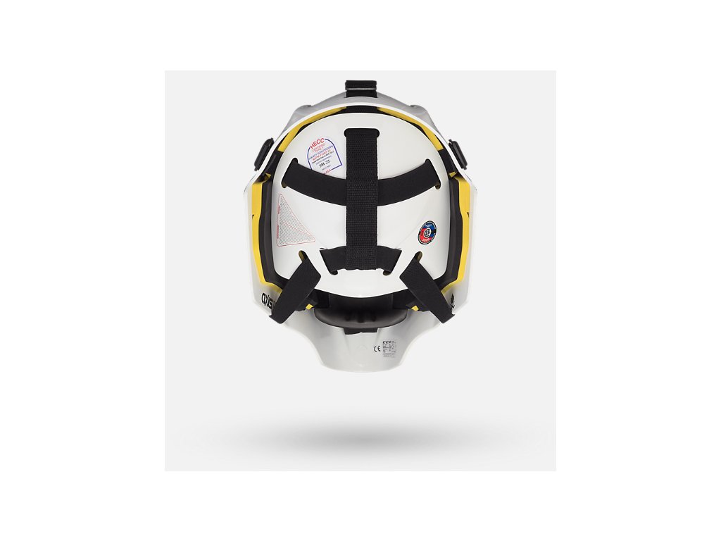 - Vnitřní výstelka masky je tvořena osvědčeným pěnovým materiálem VN (Vinyl Nitrile), který eliminuje účinky nárazu pukem do masky a zároveň zajišťuje vysoké pohodlí pro brankáře i při dlouhodobém používání