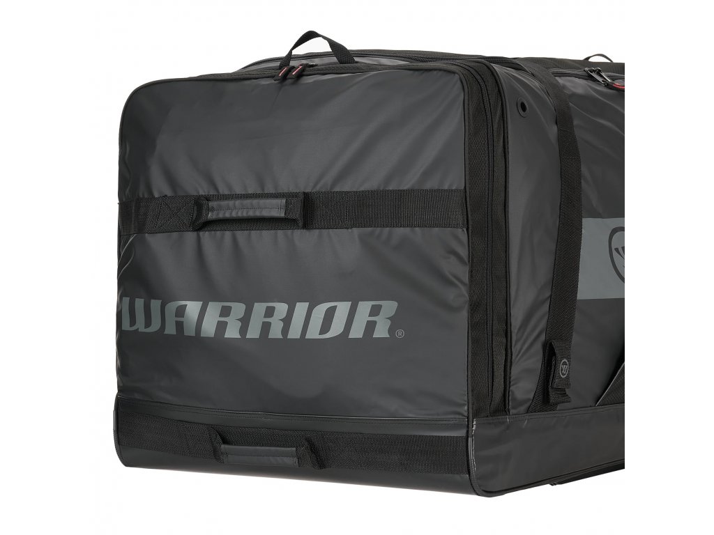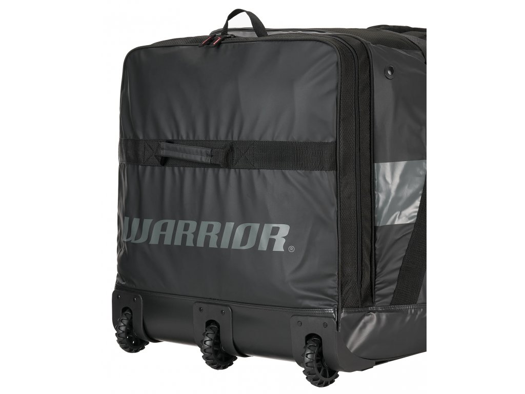 Brankářská taška Warrior na kolečkách. Odolný vnější materiál, obrovský vnitřní prostor a snadné převážení jsou hlavními přednostmi této atraktivní golmanské tašky. Rozměrově je tato taška vhodná pro převážení kompletní seniorské výbavy.