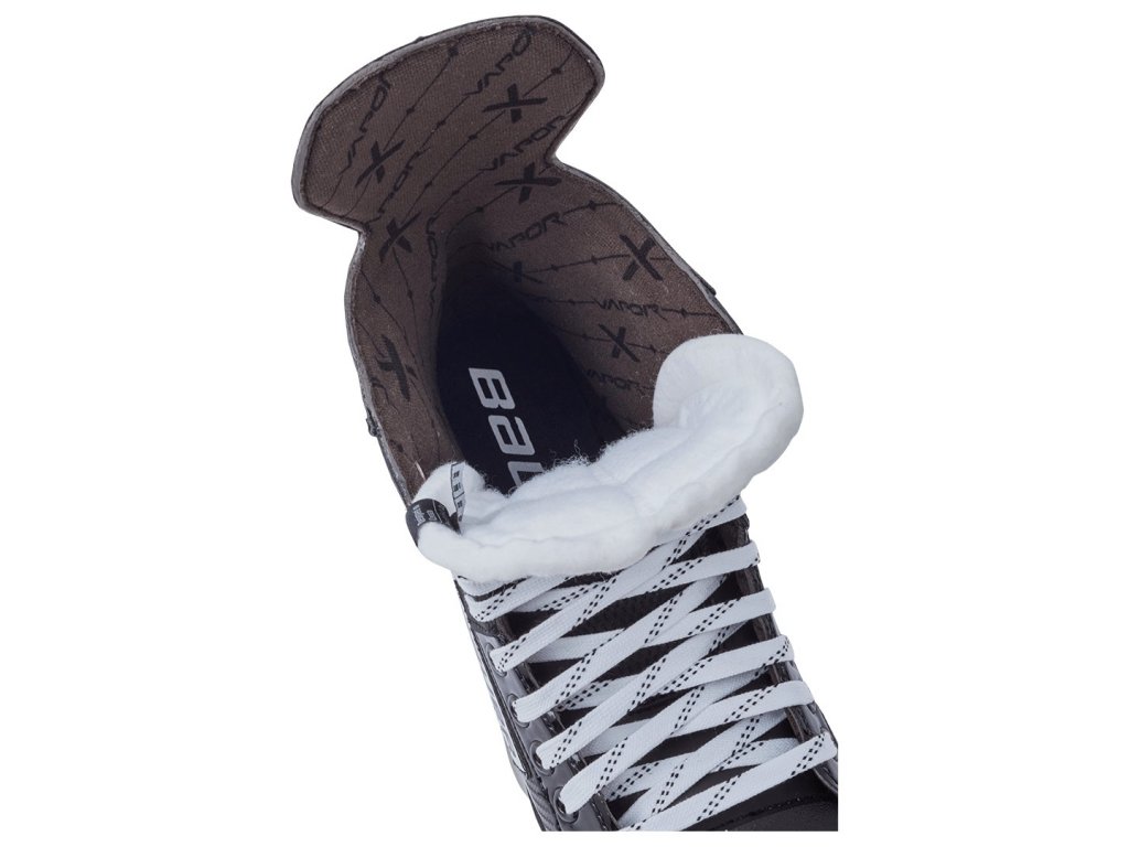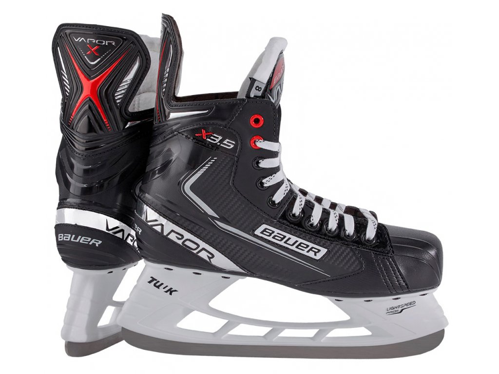 Oblíbené brusle Bauer řady VAPOR. Atraktivní brusle Bauer VAPOR X3.5 Junior jsou ideální brusle pro nejširší spektrum dětských hráčů, i u tohoto modelu ale byly použity technologie, známé z dražších typů bruslí - především jednodílná konstrukce 3D tvarovaného skeletu brusle vyrobeného z polykarbonu, nebo bezešvá vodoodpudivá výstelka.