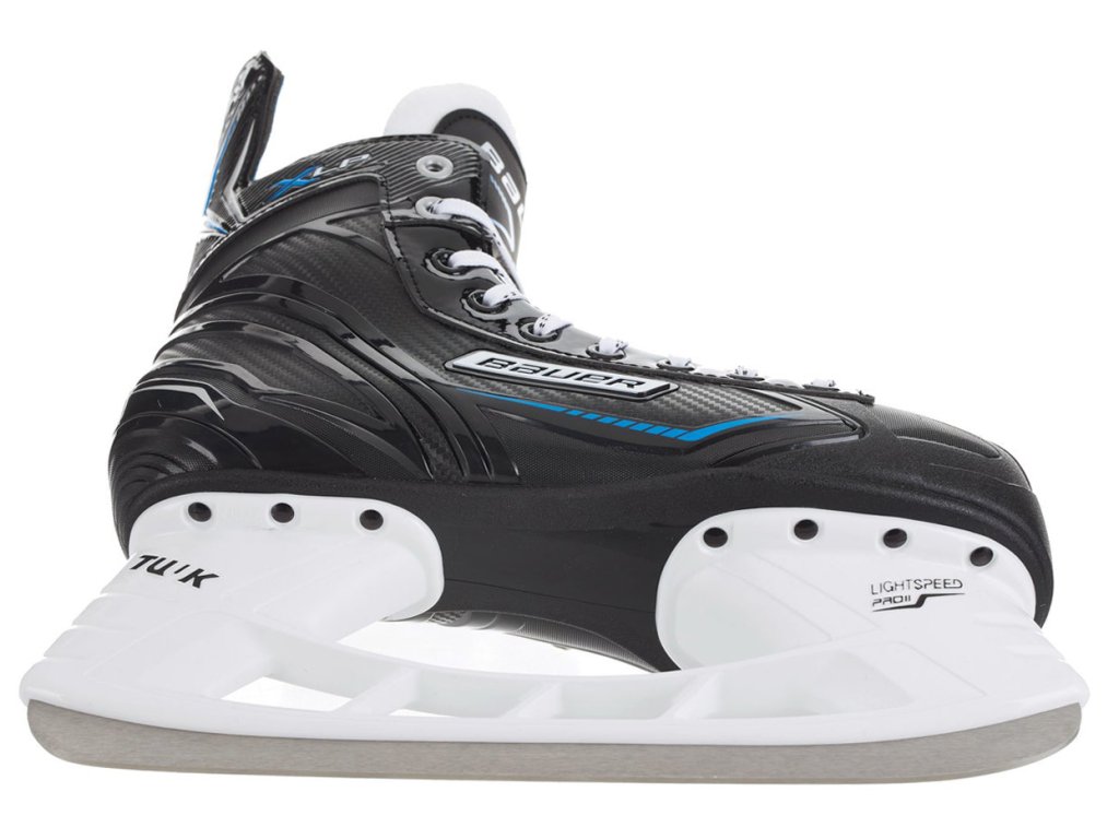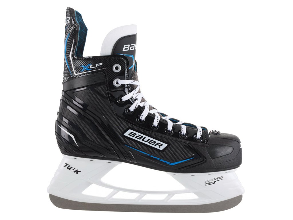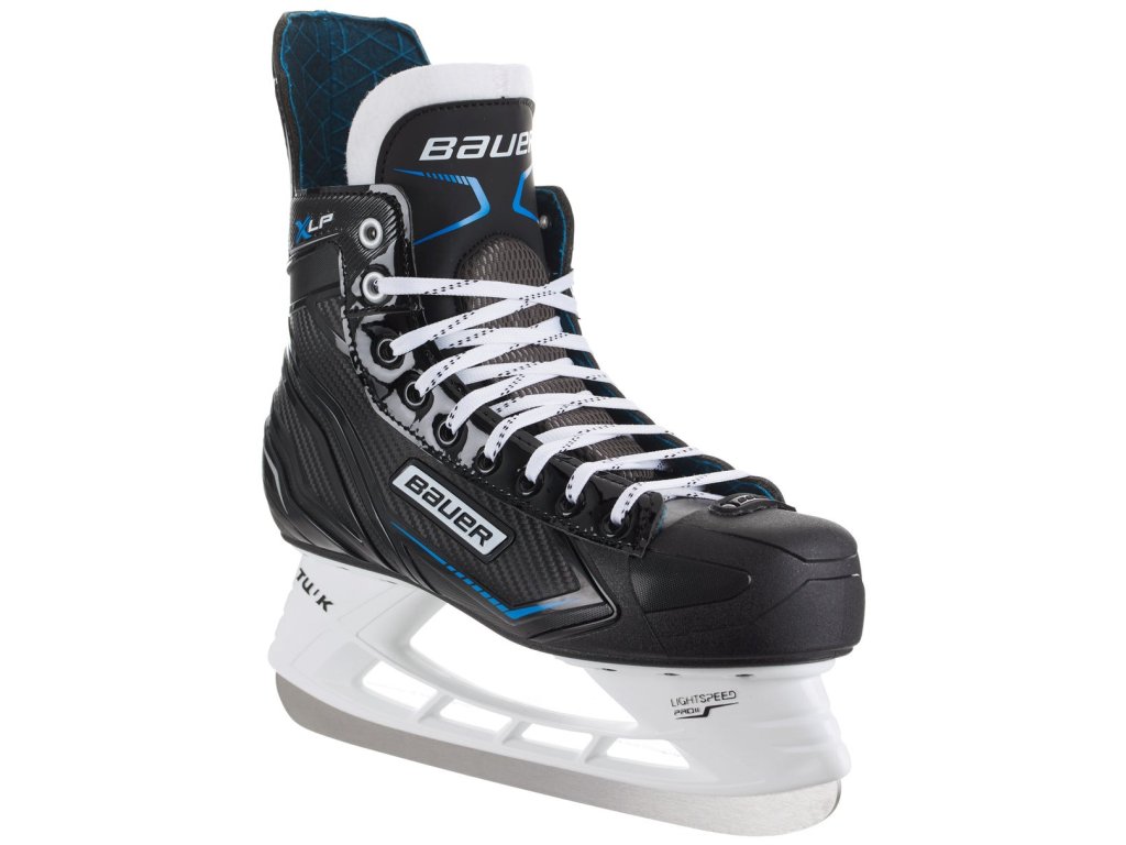 Atraktivní model bruslí Bauer X-LP (Learn to Play) pro začátečníky, rekreační bruslaře nebo amatérské nenáročné hráče. Brusle X-LP jsou vyrobené z jednodílného polykarbonátového skeletu, díky tomu jsou extrémně lehké, a přestože mají sloužit začátečníkům, působí moderním a profesionálním dojmem. Jako začátečník oceníte pohodlí bruslí, o které se stará komfortní polstrování a plstěná výstelka i jazyk. Nůž na těchto bruslích je o něco delší než u bruslí pro pokročilé bruslaře, pomůže tak lépe udržet stabilitu, zasazen je napevno v bílém holderu TUUK LIGHTSPEED PRO II.