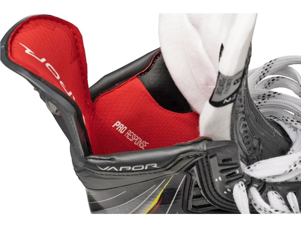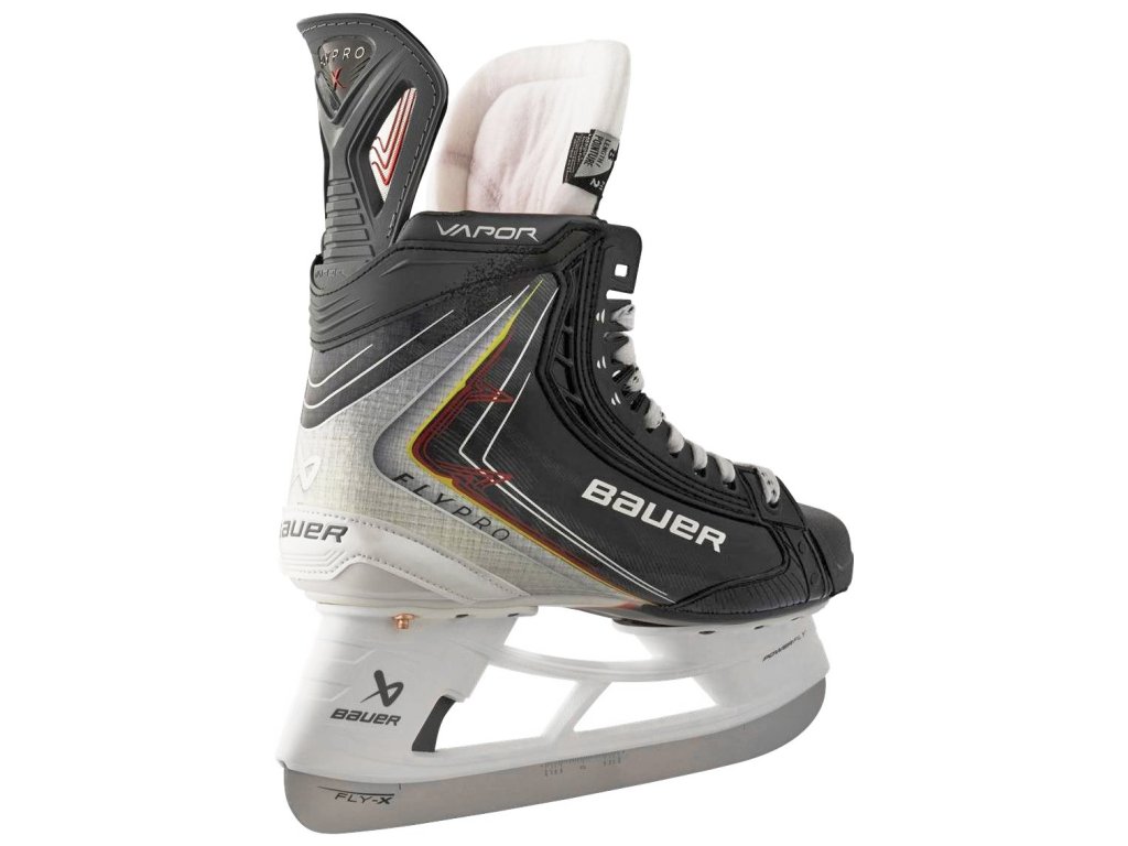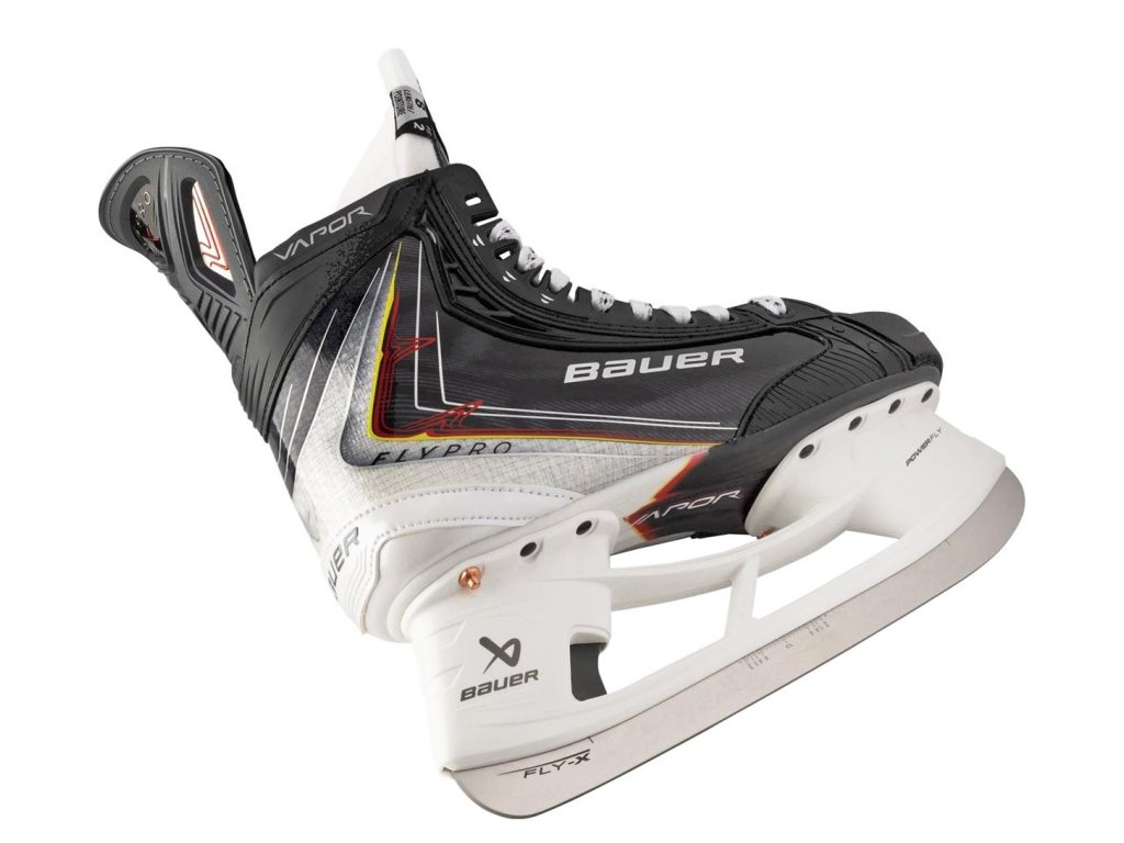 Profesionální brusle Bauer nejnovější řady VAPOR. Brusle Bauer VAPOR FLYPRO jsou druhým nejvyšším modelem řady VAPOR a jsou určeny pro profesionální hráče, tak jako všechny modely řady Vapor jsou ideální pro hbité, obratné hráče s rychlou akcelerací. Přednostmi bruslí jsou především špičková bota ze 100% termoplastického kompozitního materiálu i nový holder POWERFLY. Ten je díky svému zadnímu, ohebnému sloupku pružný, takže vám na ledě dodá nevídanou, takřka revoluční flexibilitu. Nečekaná zrychlení, spontánní otočky či změny směru bruslení – to vše bude nyní s těmito bruslemi jednodušší než kdykoliv dříve. Naopak přední sloupek Powerfly holderu je zpevněný, takže vám při rozjezdu dovolí udělat rychlé a stabilní první kroky – přesně ty, které jsou při akceleraci tak důležité.