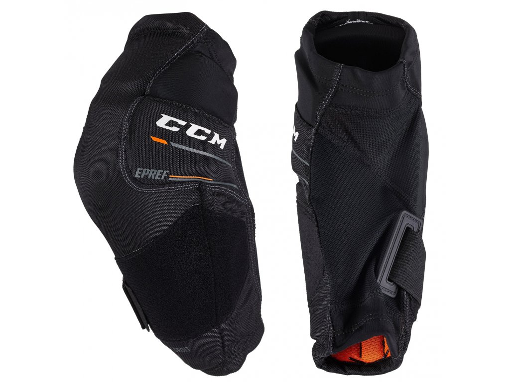 Nové loketní chrániče CCM EPREF Referee Elbow Pads s extrémně nízkou hmotností. Chrániče s "rukávovým" provedením, díky kterému na ruce skvěle sedí, maximalizují pohodlí a mobilitu a zároveň poskytují vynikající ochranu proti nárazům.