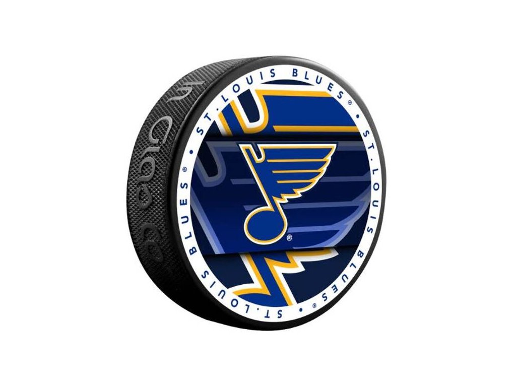 Fanouškovský puk s logem klubu NHL St. Louis Blues.