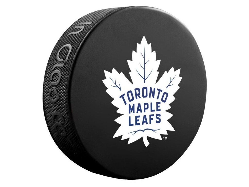 Fanouškovský puk s logem klubu NHL Toronto Maple Leafs.