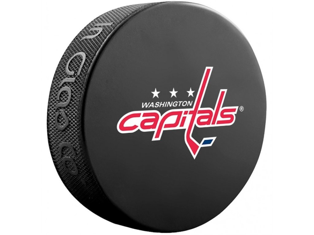 Fanouškovský puk s logem klubu NHL Washington Capitals.