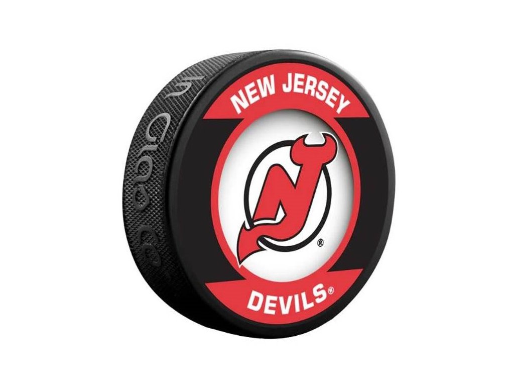 Fanouškovský puk s logem klubu NHL New Jersey Devils.
