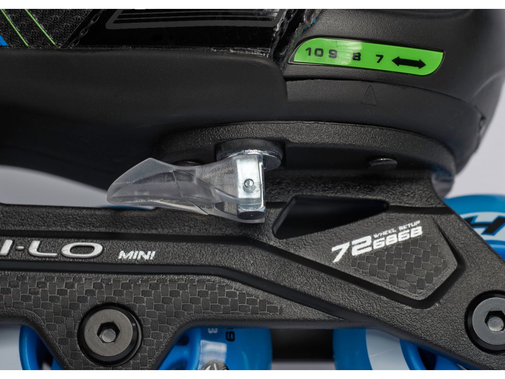 NOVINKA. Atraktivní in-line brusle s nastavitelnou velikostí pro nejmenší bruslaře. Komfortní a pevná bota je vhodná nejen pro in-line hokej, ale i pro běžné fitness bruslení. Velmi jednoduché a rychlé nastavení velikosti povolením pojistky a posouváním špičky brusle.