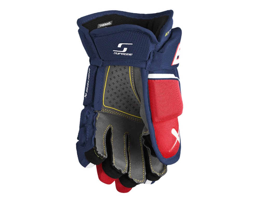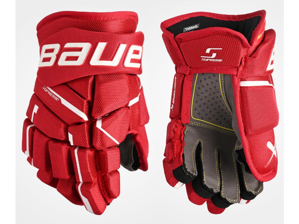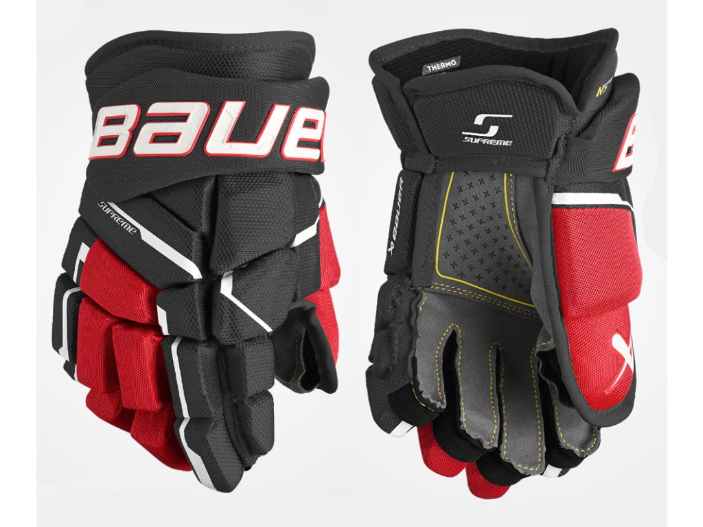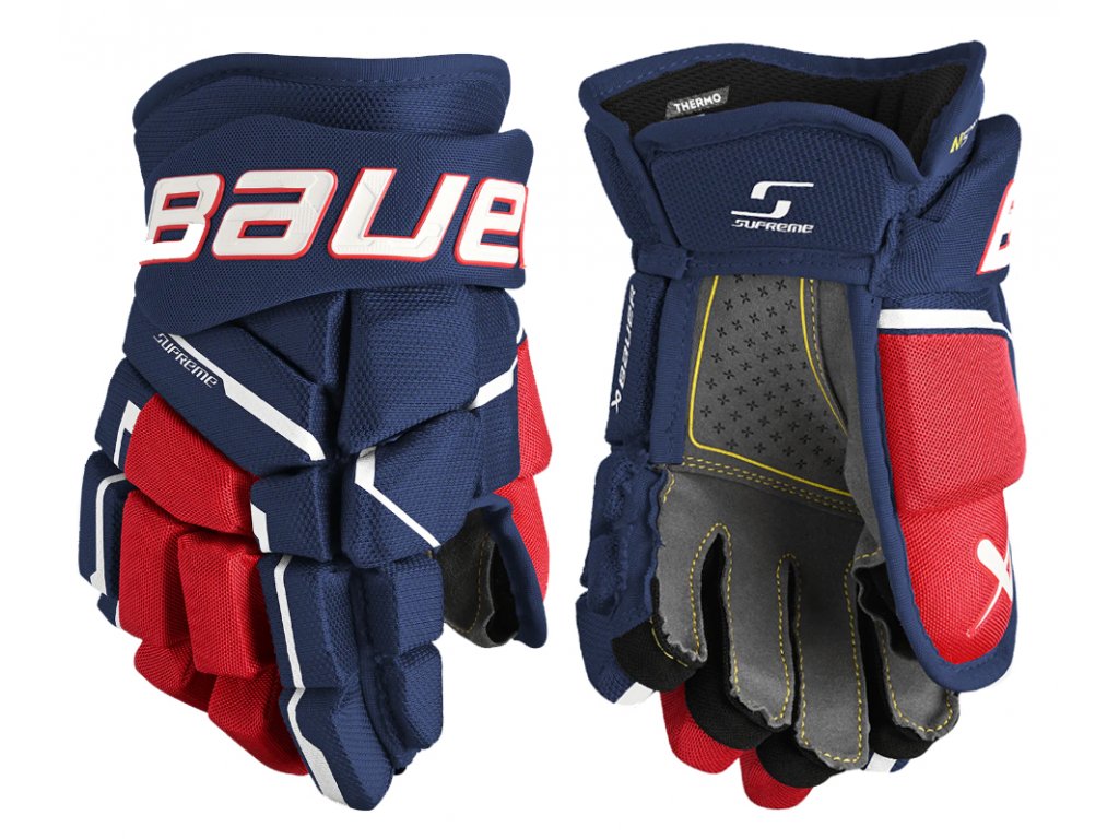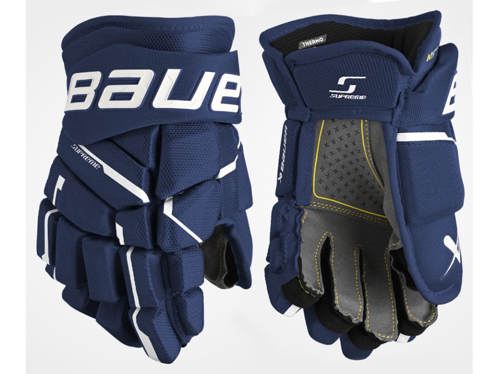 Špičkové rukavice Bauer z nejnovější řady SUPREME, druhý nejvyšší model. Rukavice s anatomickým střihem, špičkovou úrovní ochrany i pohodlí, pro nejnáročnější profi hráče. Rukavice, které se dokážou perfektně přizpůsobit každému hráči, s maximální ochranou a bez omezení pohyblivosti.