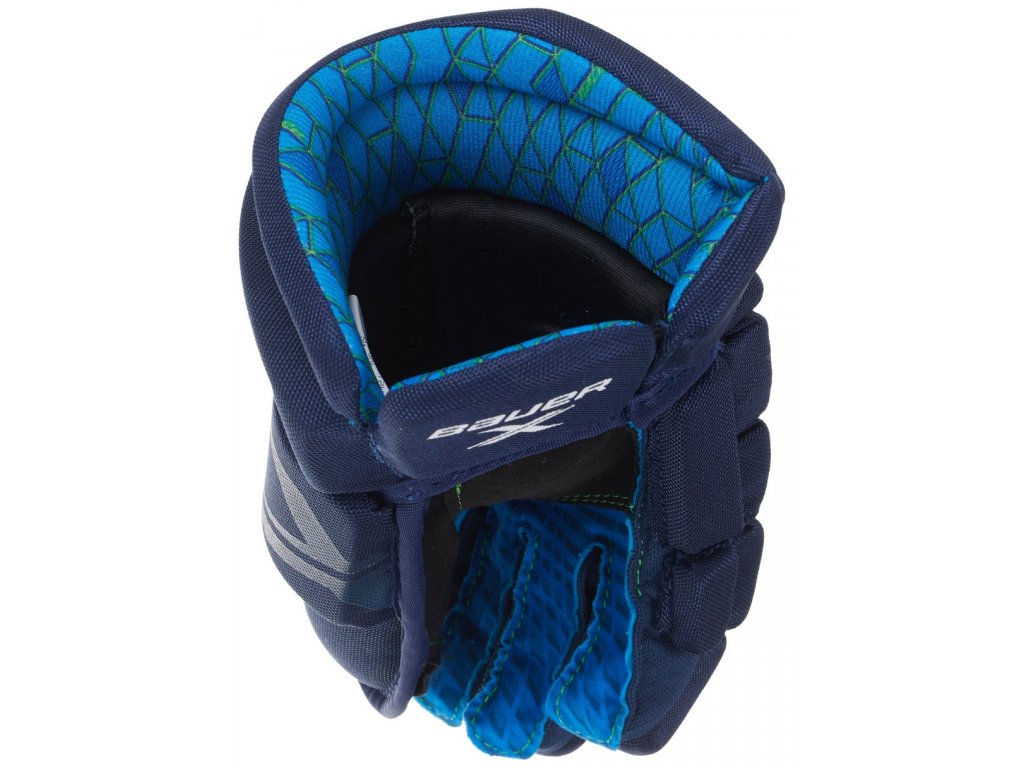 Pohodlné a atraktivní rukavice řady Bauer X. Rukavice jsou extrémně lehké, s výbornou úrovní ochrany prstů, hřbetu ruky i manžetou pro ochranu zápěstí před sekáním. Na vysoké úrovni je i ochrana palce před vykloubením.