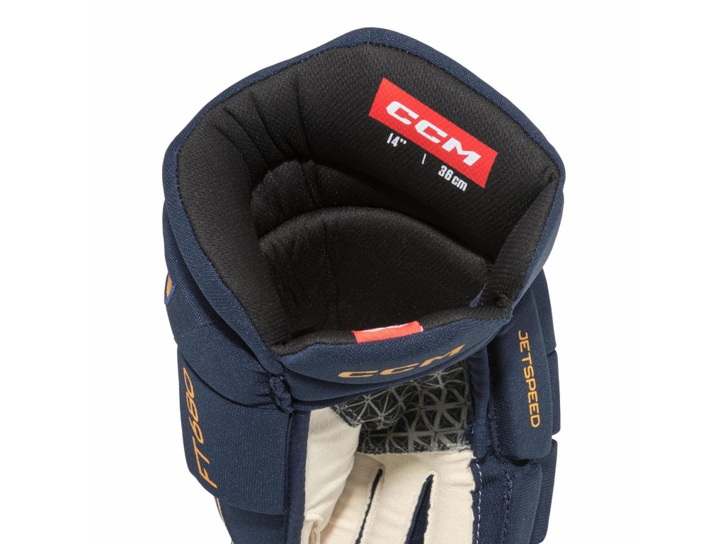 Atraktivní model lehkých a komfortních rukavic CCM řady JETSPEED. Rukavice CCM JETSPEED FT680 jsou ideální pro náročnější aktivní hráče. Rukavice ze špičkového materiálu na úrovni profi kvality, s extra zesílenou dlaní. Zajišťují skvělou úroveň ochrany díky ochranné PE pěně s vloženými plastovými díly a zároveň dovolují hráči skvělou pohyblivost v zápěstí. V neposlední řadě mají velmi atraktivní design.