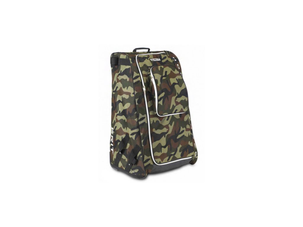 Luxusní hokejová taška na kolečkách. Taška s praktickou konstrukcí, která umožňuje jak pohodlné převážení kompletní hráčské výstroje, tak přehledné uložení výstroje pomocí oddělených přepážek. Tašku lze snadno převážet díky trvanlivým a odolným kolečkům s dezénem do všech terénů, lze ji přenášet pomocí zesílené látkové rukojeti na boku tašky a velká výhoda je především možnost postavení tašky na výšku. To oceníte především v menších šatnách, ale příjemný je v tomto případě i velmi snadný a přehledný přístup do tašky.