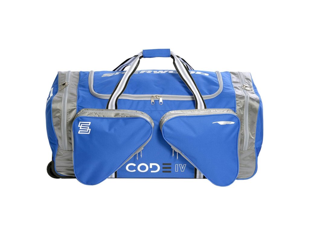Taška na kolečkách Sherwood CODE IV Wheel Bag je odolná hokejová taška, vyrobená z trvanlivého 600D nylonu. Konstrukce tašky je zpevněna plastovým dnem a ližinami. Základ tašky tvoří prostorný hlavní panel se vstupem ve tvaru "U", který umožňuje pohodlné vkládání hráčské výstroje. Hlavní prostor tašky dokáže snadno pojmout kompletní hráčskou výstroj.