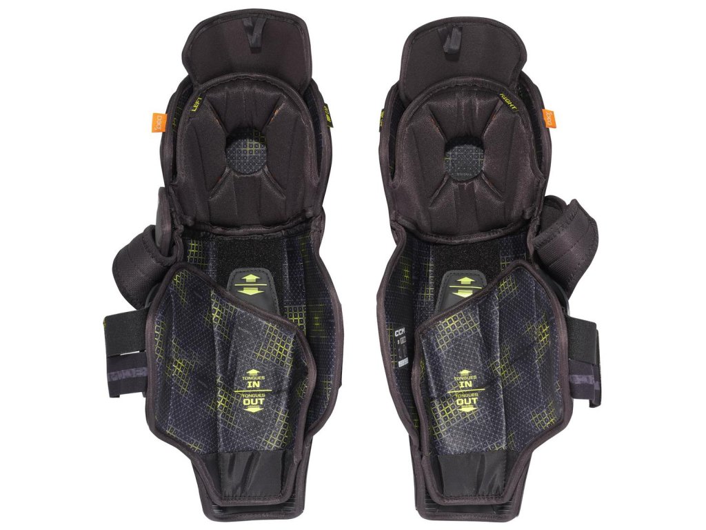 - Celý chránič lýtka je nastavitelný s odnímatelnou vložkou ADAPTFIT+ odnímatelná spodní vycpávka pro jazyky na přání. Spodní odnímatelná vložka pro přizpůsobení střihu, pokud dáváte přednost nošení bruslí jazykem dovnitř, pro přiléhavou ochranu těsně k noze