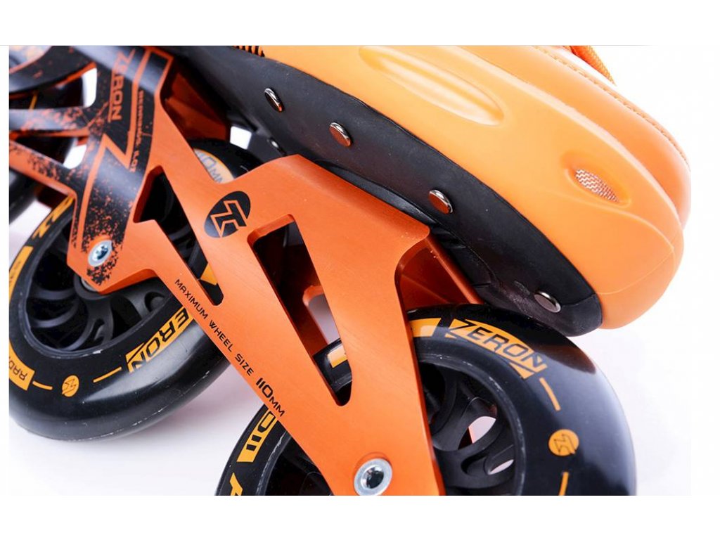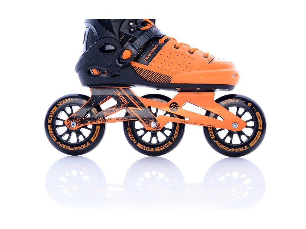 Model TEMPISH ZERON je osazen podvozkem Pro Skate 3 x 110 u něhož byly zkombinovány nejlepší vlastnosti pro bruslení – rychlost a ovladatelnost! Vysokou rychlost zajišťují 3 kolečka o průměru 110 mm, ovladatelnost pak zajišťuje délka podvozku: