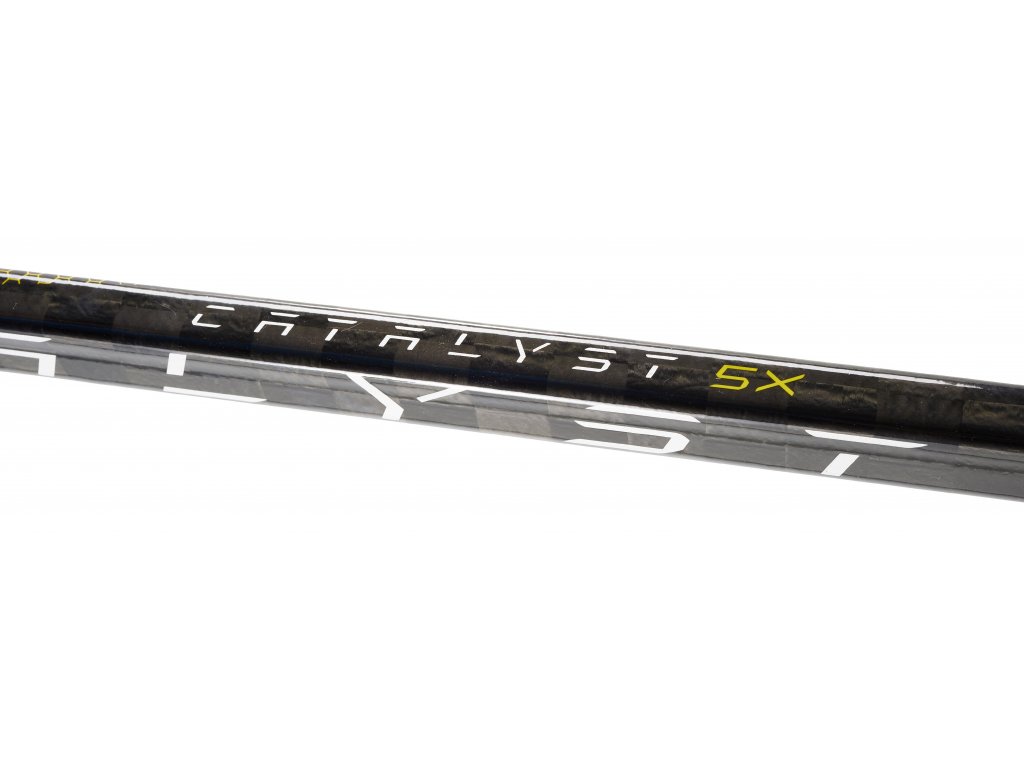 Skvělá kompozitová hůl TRUE CATALYST 5X se spoustou špičkových technologií pro neuvěřitelný výkon, odolnost a cit. Nová konstrukce shaftu Precision Laminate Design (PLD) drasticky snižuje hmotnost díky pokročilým technikám vrstvení karbonových vláken, aniž by se snížila odolnost nebo pevnost. Čepel hole 5X využívá dvě nové klíčové technologie - Technologie BAT (Braided Aramid Technology) a PASS (Performance Advanced Strengthening System). Nová pěna v jádru čepele PASS je pak tužší, pevnější a stabilnější než dříve, což vše vede k výraznému snížení hmotnosti při stejném pocitu z čepele XCore. Hokejka je lehčí oproti předchozí generaci, váží pouhých 430 gramů (pro Flex 85). Navíc s atraktivním designem.