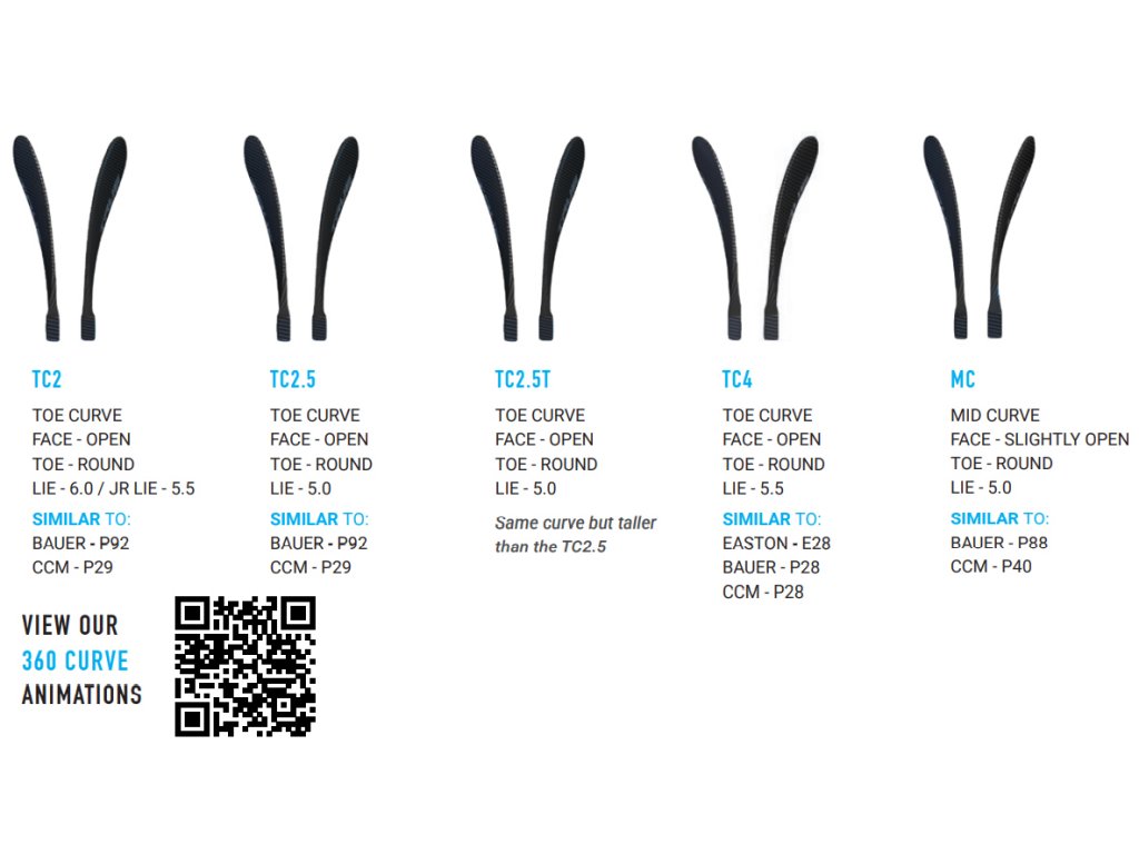 - Zahnutí TC2.5 (obdobné jako CCM P29 nebo Warrior W03 nebo Bauer P92), TC4