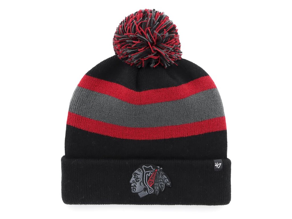 Zimní čepice Chicago Blackhawks s ohrnutým lemem a bambulí.