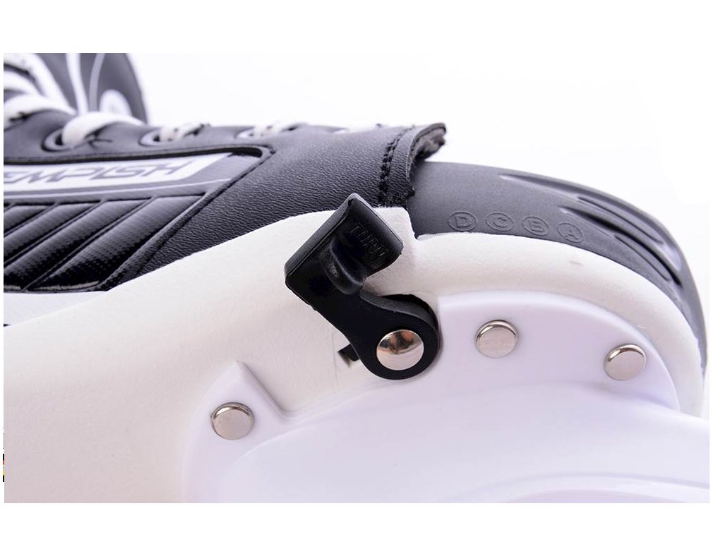 - Klasická šitá hokejová bota s posuvnou přední částí