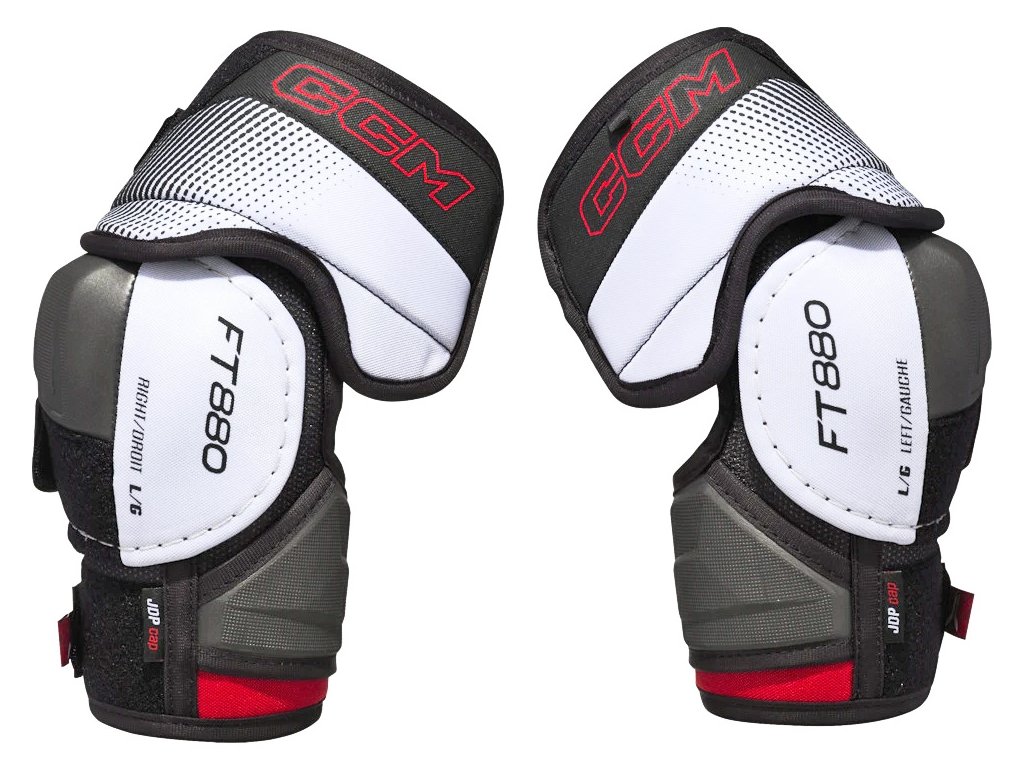 Komfortní chrániče loktů modelové řady CCM JETSPEED. Lokty CCM JETSPEED FT880 mají novou hybridní dvojdílnou konstrukci, která zaručuje výbornou pohyblivost, komfortní usazení lokte v chrániči, velmi pohodlné vnitřní polstrování a samozřejmě zaručují vynikající úroveň ochrany, i díky originální JDP konstrukci vnějšího skeletu, která zajišťuje bezpečné rozptýlení energie nárazu.