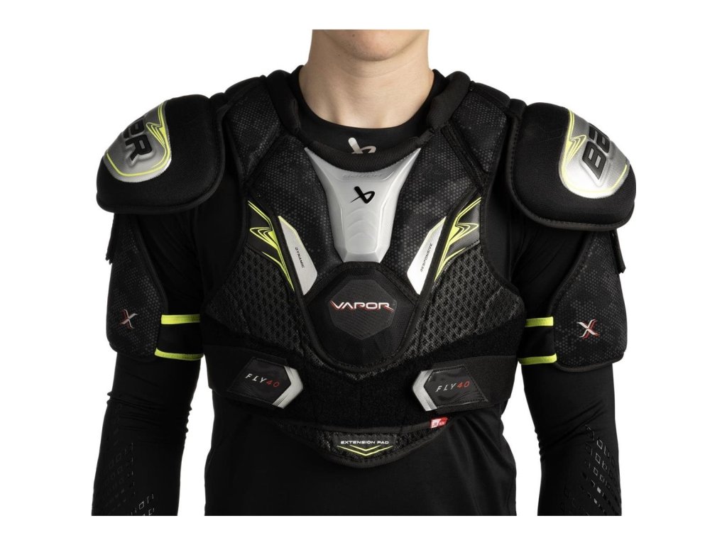 Komfortní chrániče ramen z nejnovější řady Bauer VAPOR. Chrániče Bauer VAPOR FLY40 nabízí vyvážený mix mobility, úrovně ochrany a komfortu, a využívají některé materiály a technologie, jako u kvalitativně vyšších řad chráničů. Skvěle padnoucí chrániče ramen atletického střihu s velmi nízkou hmotností.