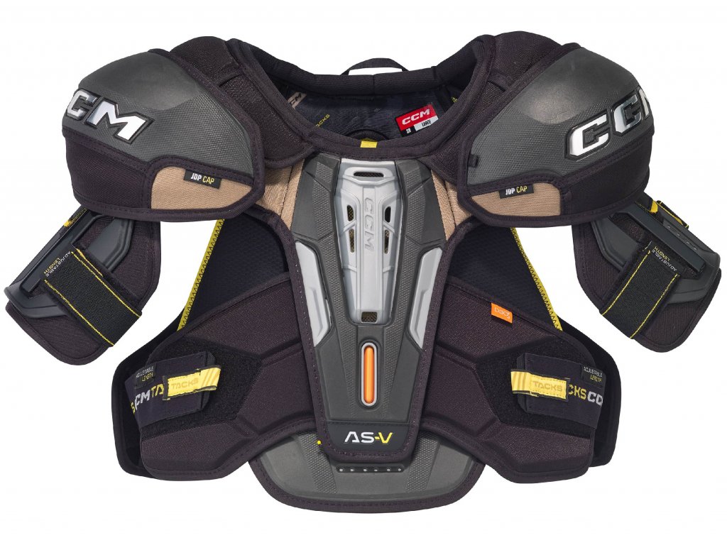 Nejnovější chrániče ramen CCM řady TACKS, druhý nejvyšší model. Chrániče se špičkovým provedením, využívající nejnovější technologie a špičkové materiály, díky nimž je zajištěna dokonalá ochrana i maximální pohodlí pro samotné hráče. Anatomický střih chráničů zabezpečuje perfektní usazení chráničů na těle při jakémkoli pohybu hráče.