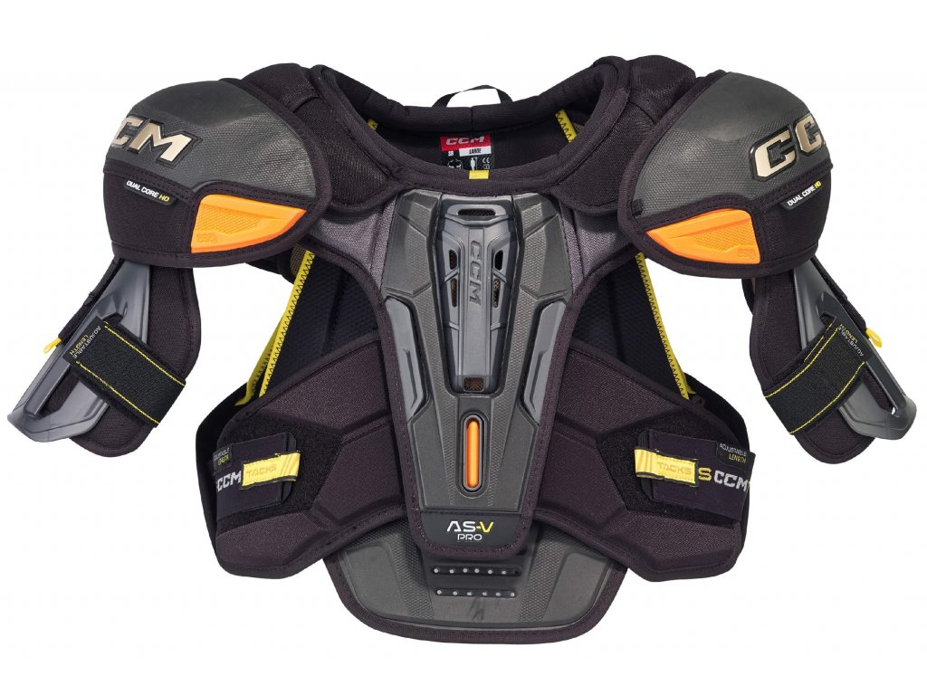 Nejnovější profesionální TOP chrániče ramen CCM z modelové řady TACKS. Chrániče se špičkovým provedením, využívající nejnovější technologie a špičkové materiály, díky nimž je zajištěna dokonalá ochrana i maximální pohodlí pro samotné hráče. Anatomický střih chráničů zabezpečuje perfektní usazení chráničů na těle při jakémkoli pohybu hráče.