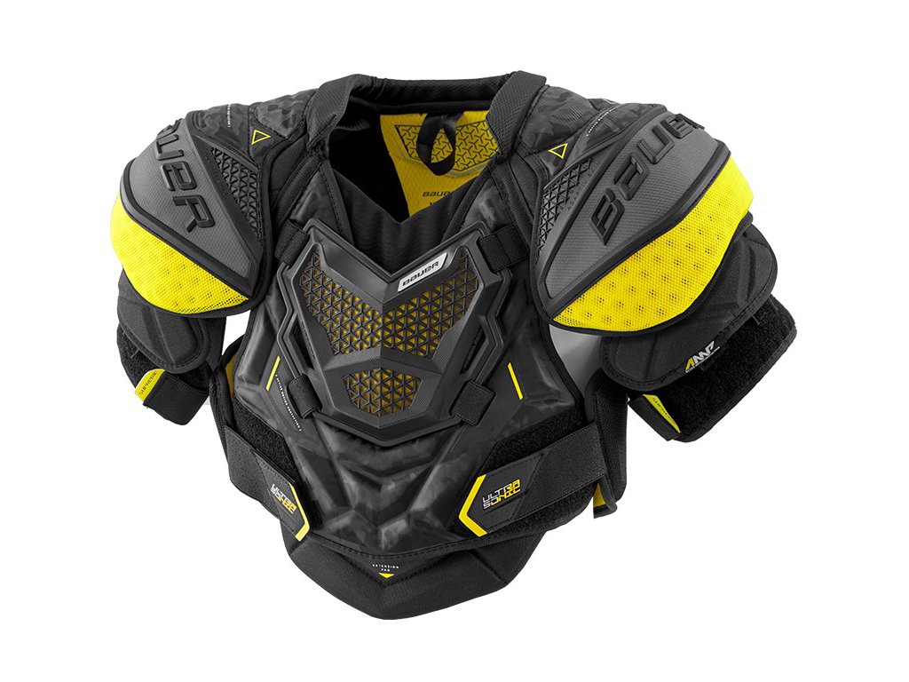 Špičkové chrániče Bauer Supreme Ultrasonic jsou navrženy pro elitní hráče, kteří vyžadují nekompromisní krytí a ochranu, ale bez omezení pohyblivosti. Díky konstrukci Bauer AMP v ramenních chráničích i chráničích bicepsů mají hráči neomezenou pohyblivost a stálé pokrytí při jakémkoli pohybu těla.