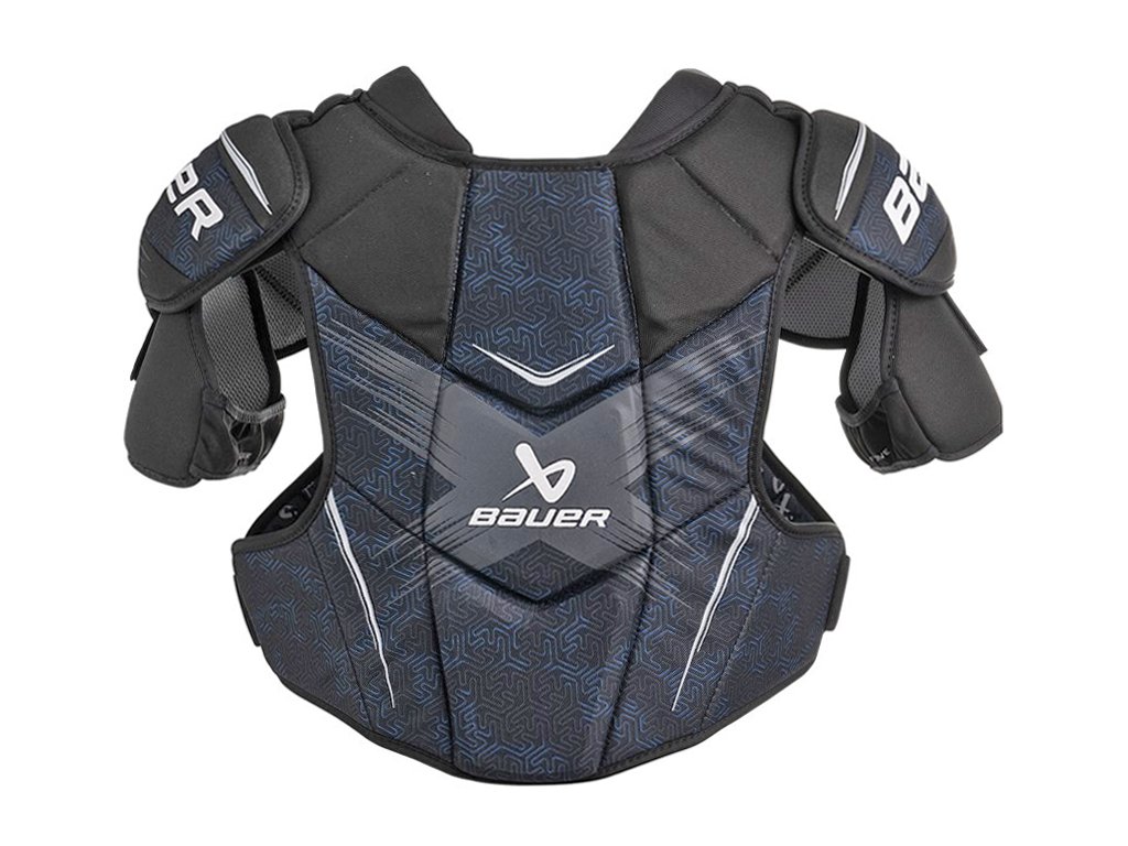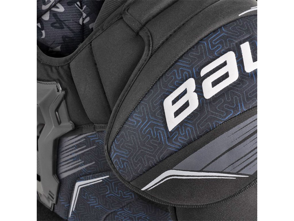 Chrániče ramen z nejnovější modelové řady Bauer X. Komfortní chrániče nejen s novým designem, ale především s vynikající úrovní ochrany a pohodlí, navíc za velmi dobrou cenu. Na ochranu klíčových oblastí před nárazy, jako jsou ramena, hrudní kost a bicepsy, jsou použity tvrdé lisované plastové díly, na ochranu trupu je pak použita nový pěnový materiál FlexCell, který zajišťuje ochranu i pohodlné nošení. Ideální chrániče ramen pro rekreační nebo příležitostné hráče.