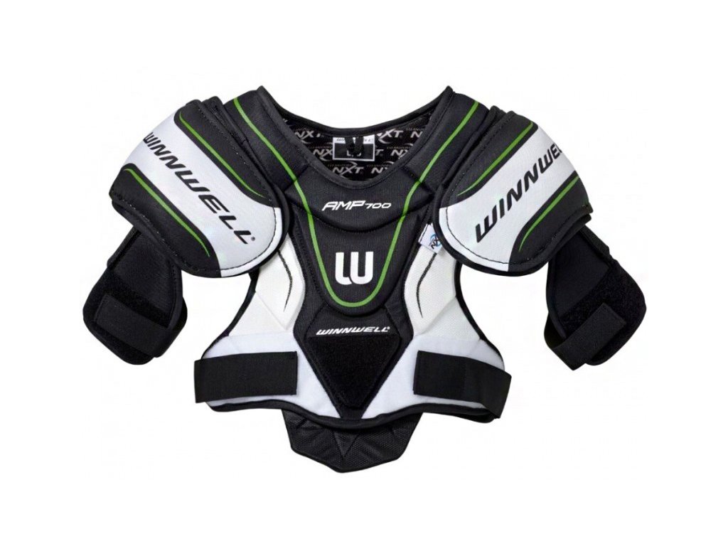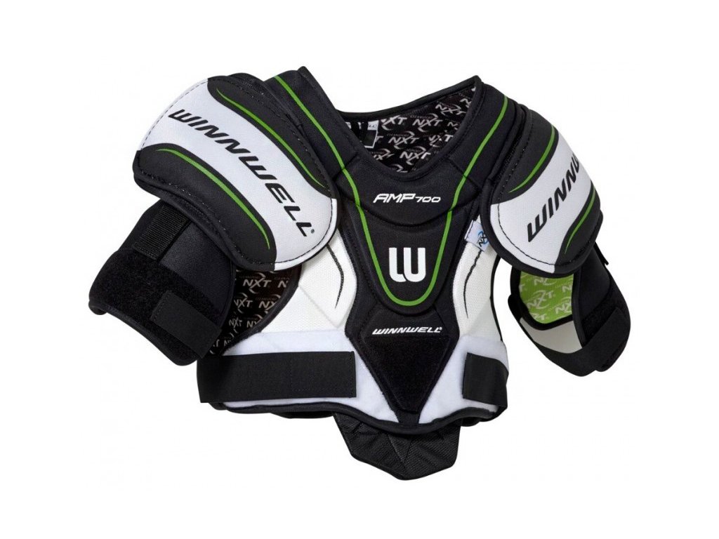 NOVINKA. Chrániče ramen Winnwell AMP 700 s výbornou úrovní ochrany, s originální Winnwell antibakteriální podšívkou s technologií NXT, která zamezuje vzniku nepříjemných "vůní". Skvělá volba pro náročnější rekreační hráče ledního hokeje.