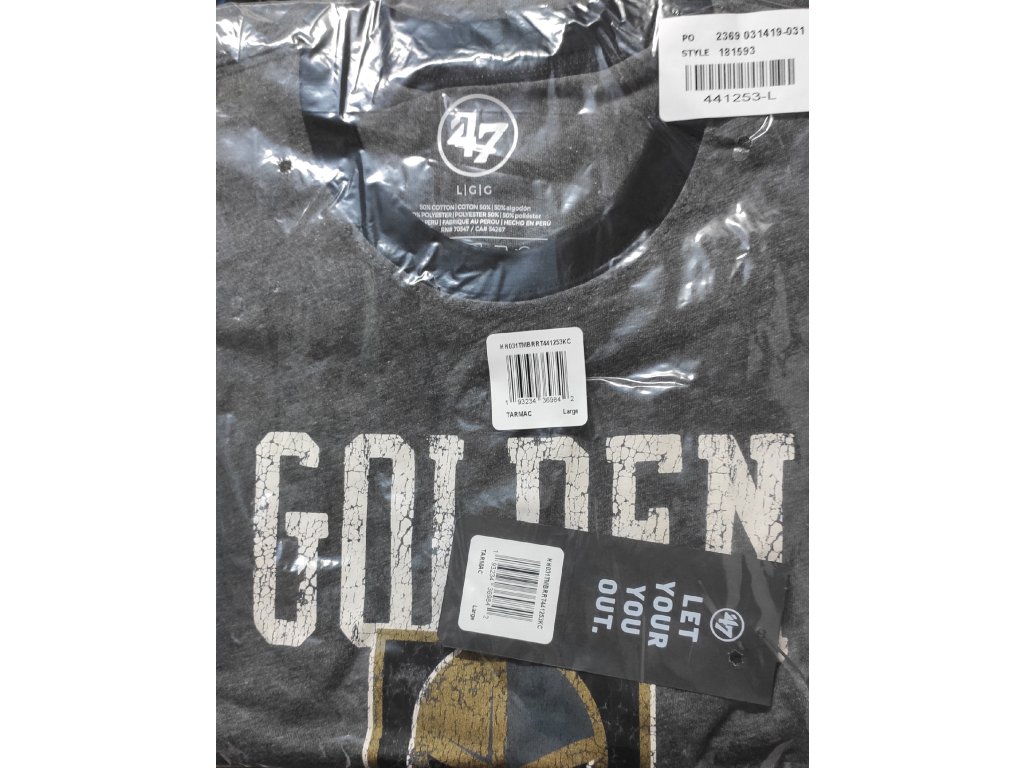 NOVINKA. Atraktivní triko v šedé barvě s logem klubu NHL Vegas Golden Knights.